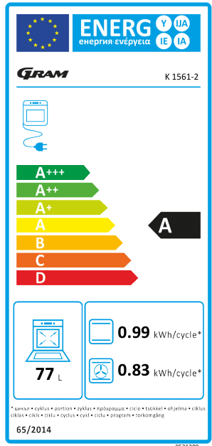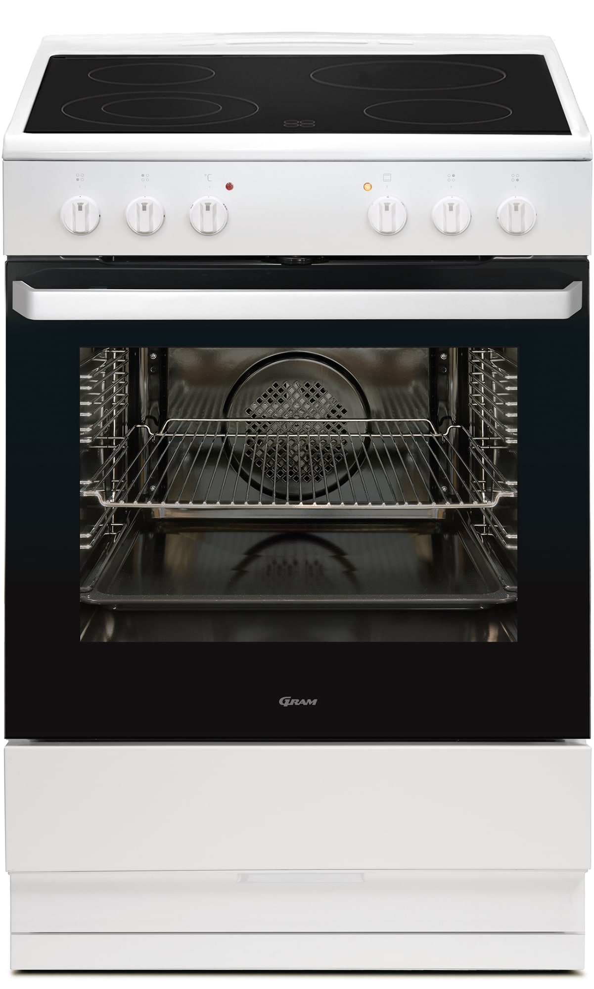 Gram keramisk komfur med et ovnrum på 77 liter og udvidelseszone. Læs hele beskrivelsen