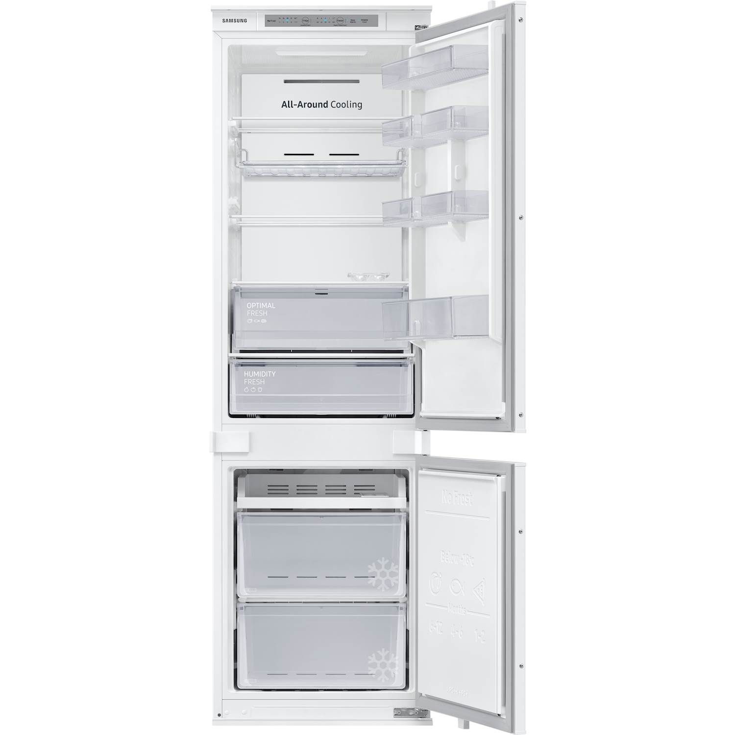 All-Around Cooling fordeler kulden jævnt i køleskabet, inklusive døren, så din mad forbliver frisk, uanset hvor du placerer den. Ved at cirkulere kold luft og løbende kontrollere temperaturen sikrer All-Around Cooling, at maden på hylderne bliver kølet effektivt ned og holder sig frisk længere.