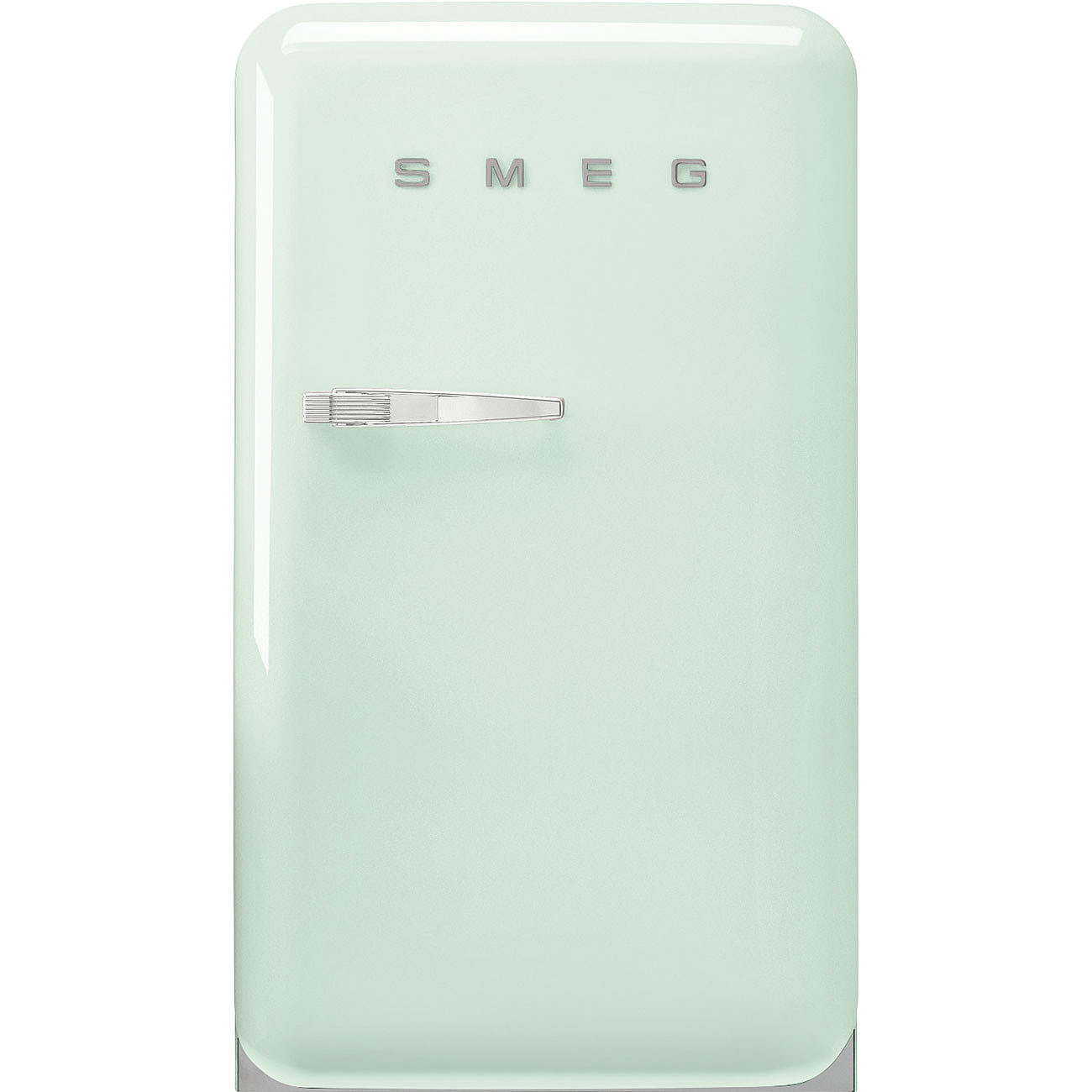 Smegs 50 s style køleskab FAB10HLCR5/V har 135 l kølekapacitet og moderne teknologier som effektivt LED-lys og let afrimning. Modellen er venstrehængslet.