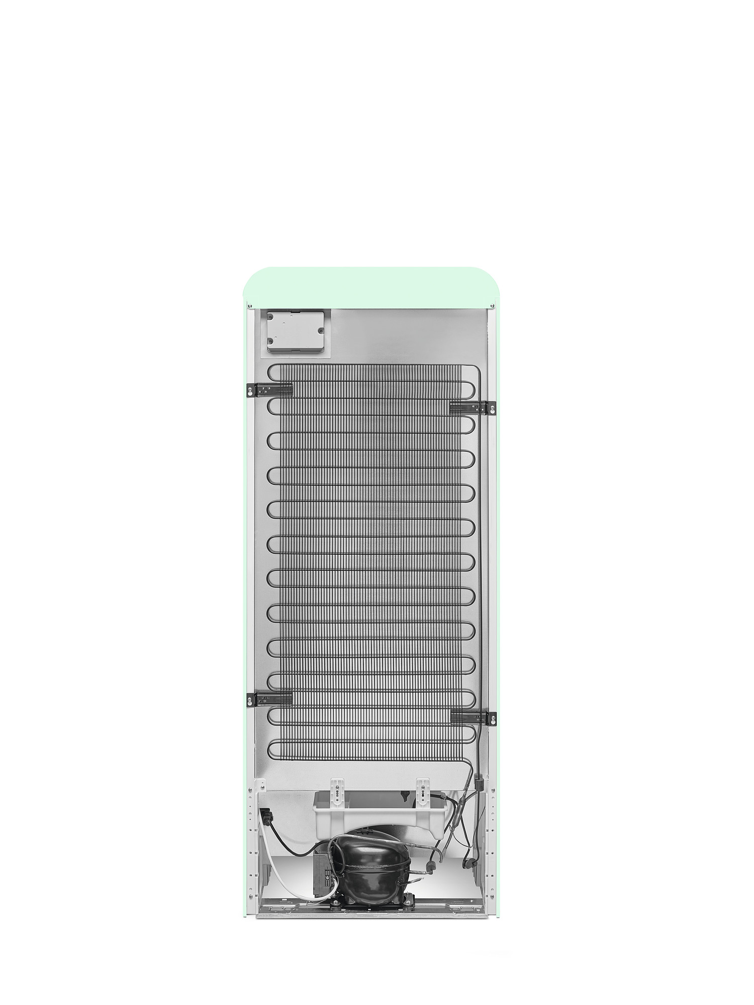 Køleskab fra Smeg i pastelgrøn med fryseboks, grøntsagsskuffe og LED belysning. Læs hele beskrivelsen